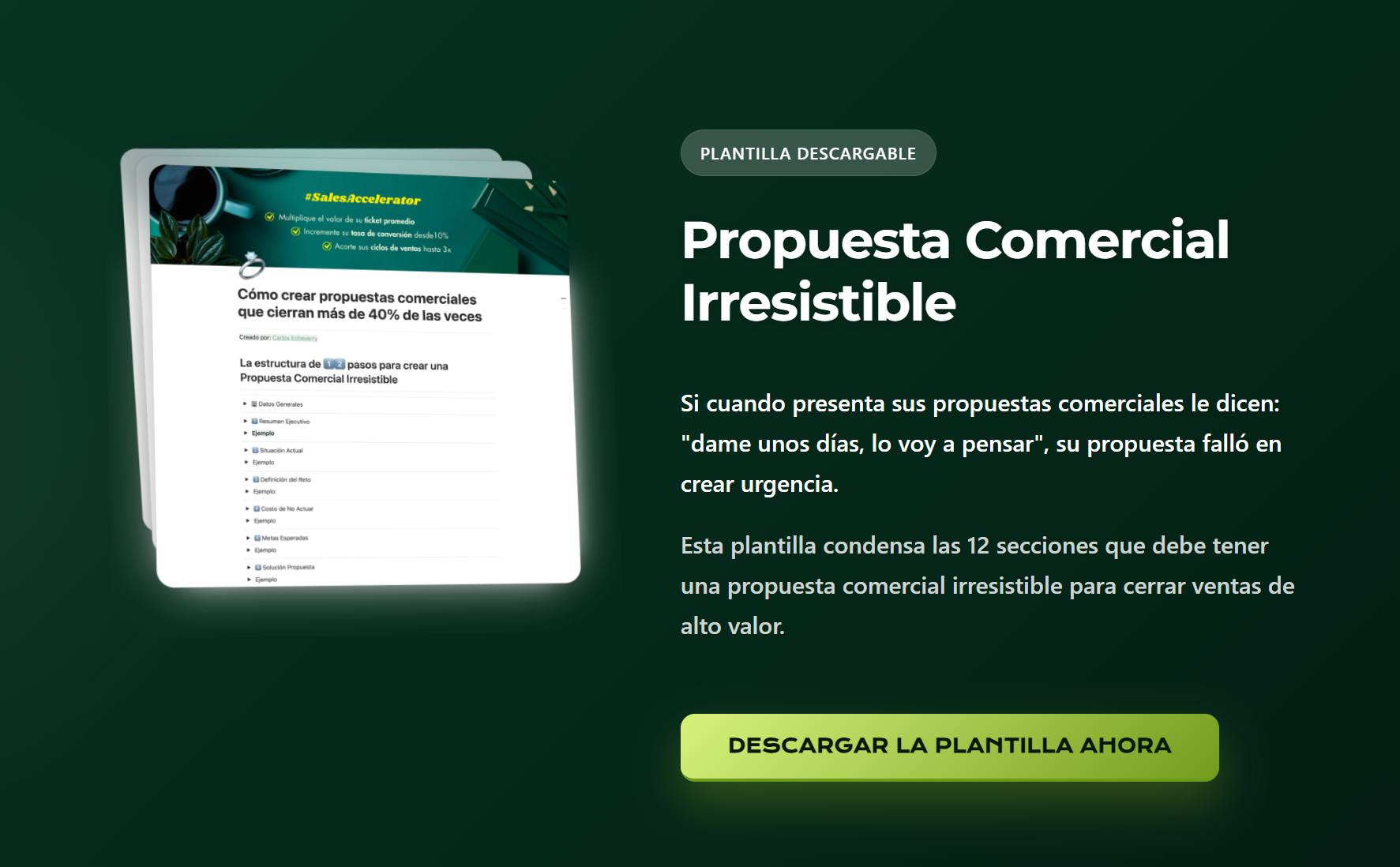 Estoy actualizando mi sitio Web para ofrecerte una mejor experiencia y mucho valor. Por ahora, puedes descargar las 12 secciones que debe tener una propuesta comercial irresistible para cerrar ventas de alto valor.